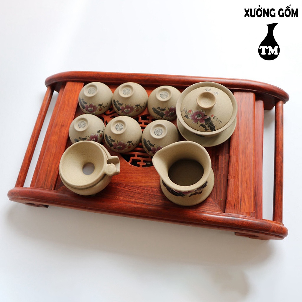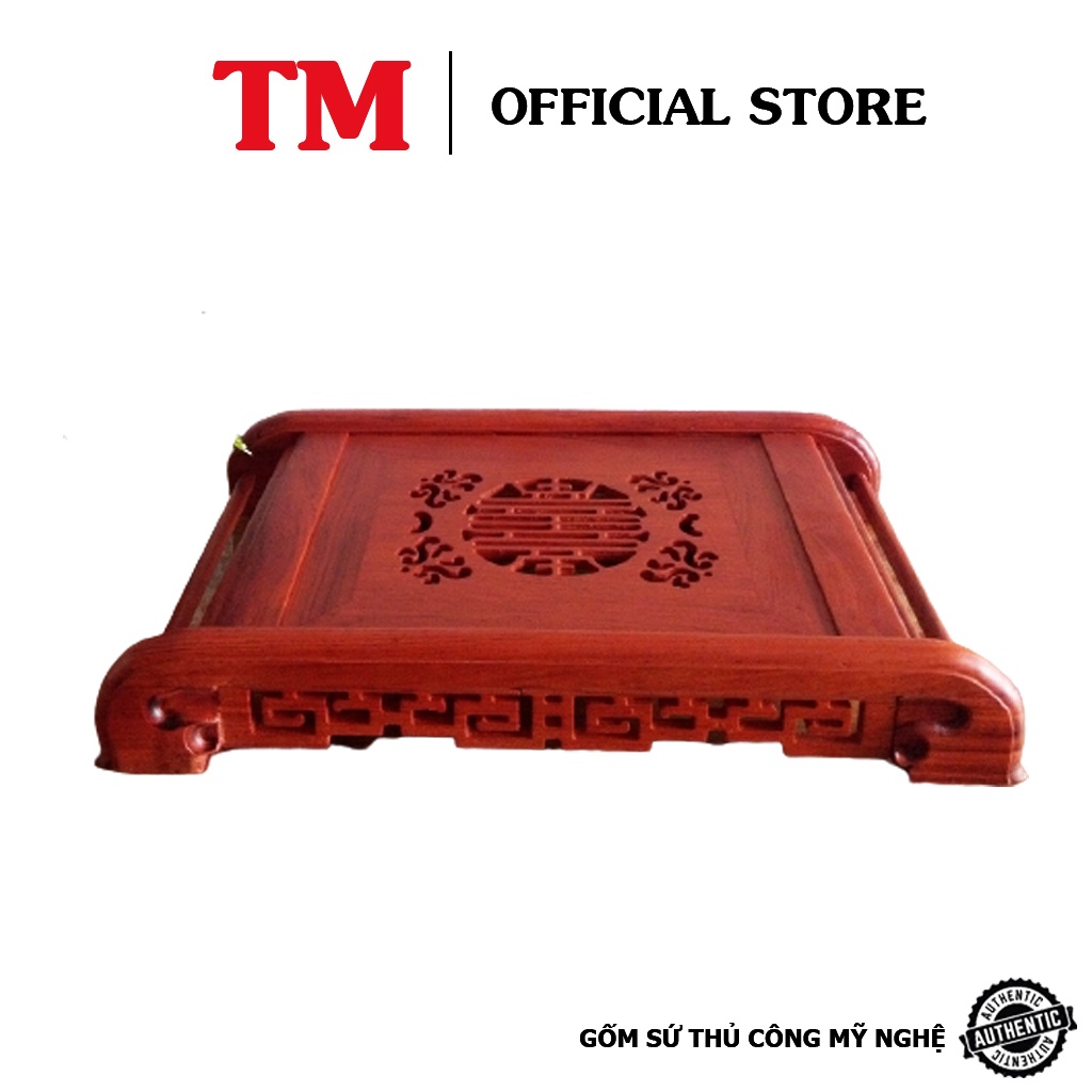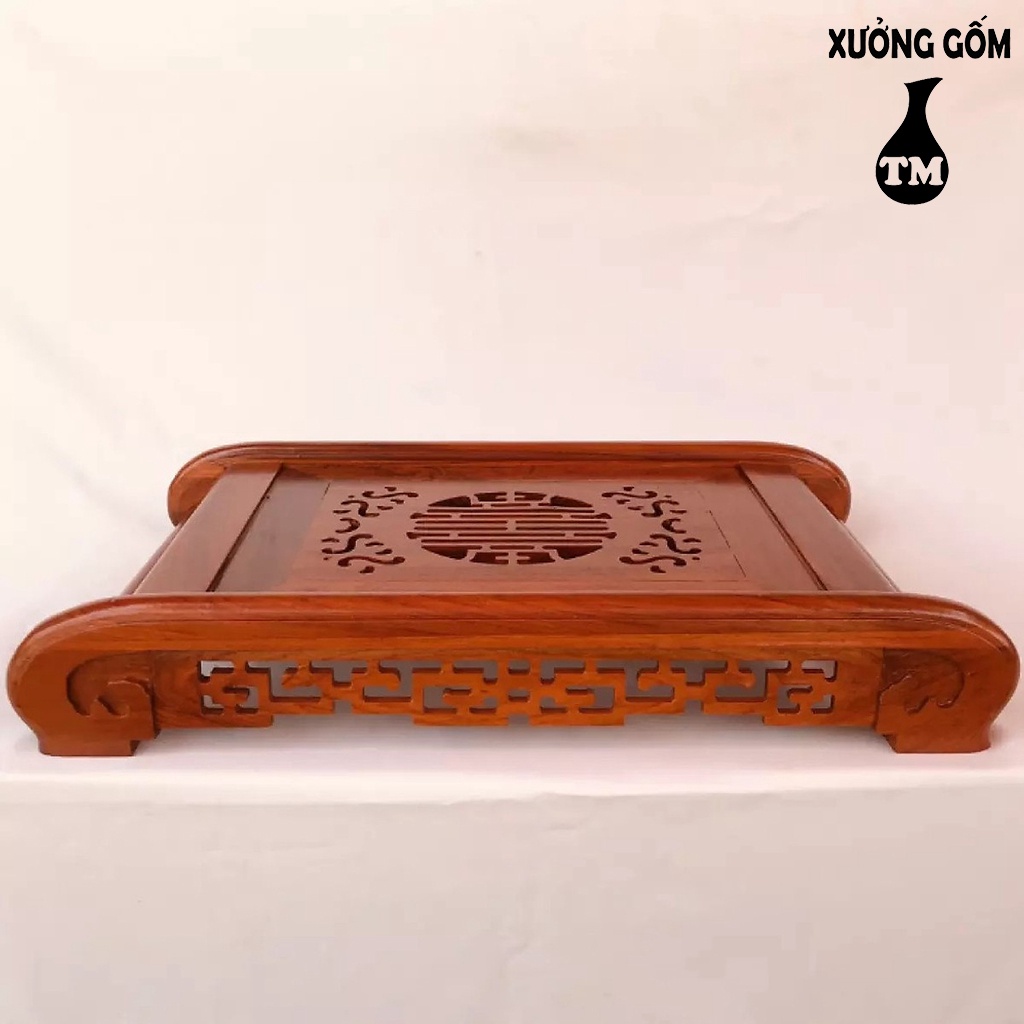 Nhà cửa & Đời sống > Bộ đồ bàn ăn > Khay, tấm lót bàn ăn || [Mã INCU50 giảm 50K đơn 250K] Khay trà cuốn gỗ hương ta màu đỏ kèm khay inox hứng nước sang trọng Xưởng Gốm TM Bát TràngCòn hàng