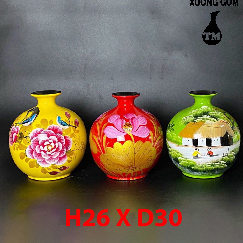Nhà cửa & Đời sống > Trang trí nhà cửa > Bình trang trí || [Mã BMLTA50 giảm 10% đơn 99K] Bình hút tài lộc sơn mài Xưởng Gốm TM Bát Tràng họa tiết vẽ tay H25 + Tặng kèm đế kêCòn hàng