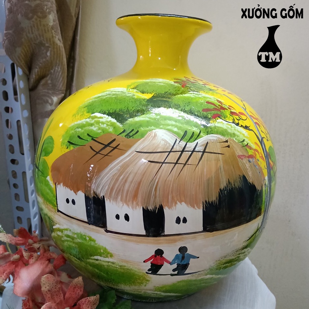 - Bình hút tài lộc hoa phù dung, vẽ đồng quê- Kích thước: cao 25 cm Đường kính: 21 cm