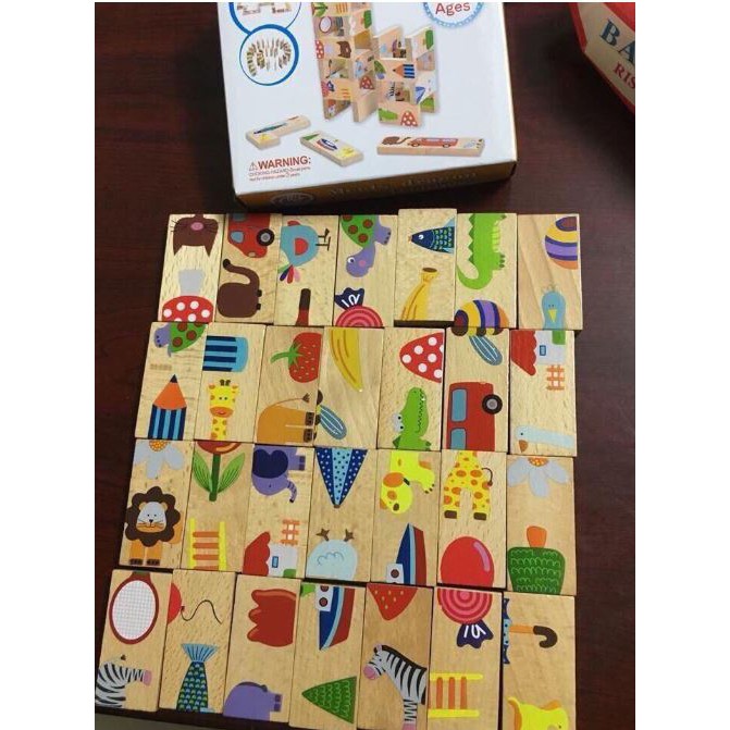 DOMINO Gỗ 28 chi tiết + GHÉP HÌNHKích thước mỗi chi tiết: 6cm x 3cm x 0.8cm