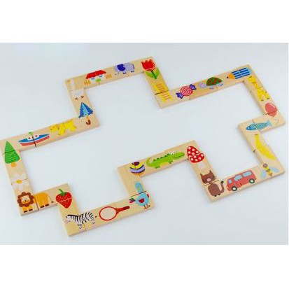 Bộ ghép hình domino gỗ họa tiết dễ thương nhiều màu sắc