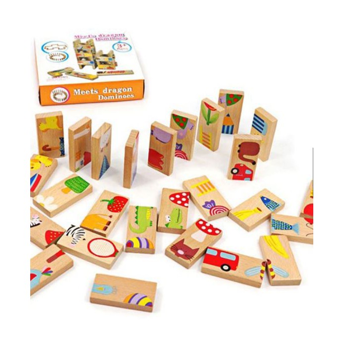 DOMINO Gỗ 28 chi tiết + GHÉP HÌNH