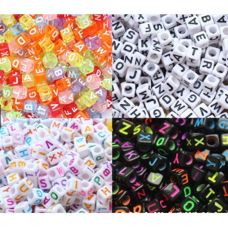 Hạt nhựa vuông in chữ cái 7mm (100 chữ)