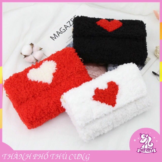 [Có video hướng dẫn] Set nguyên liệu làm túi, túi tự đan len hình trái tim