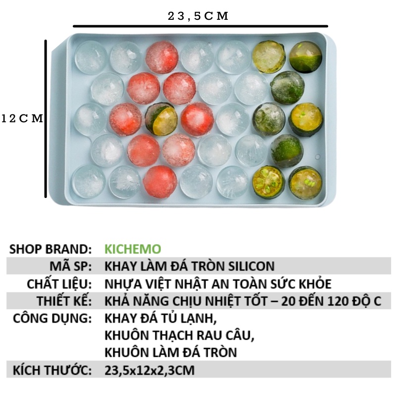 Khay làm đá tròn có nắp đậy Khuôn làm đá tròn đá bi - Kichemo KLD02Mô tả sản phẩm: