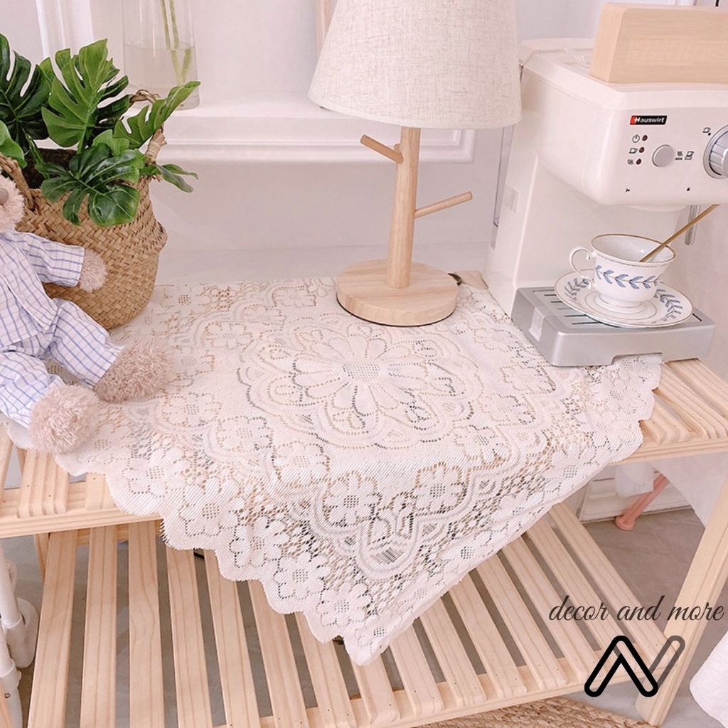 Khăn trải bàn trắng phối ren chống bụi trang trí decor phong cách Hàn Quốc
