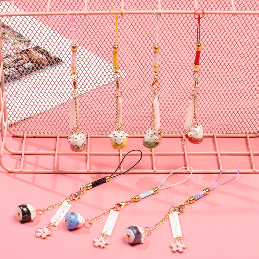 1 x Dây đeo điện thoại hình mèo may mắn/hoa anh đào