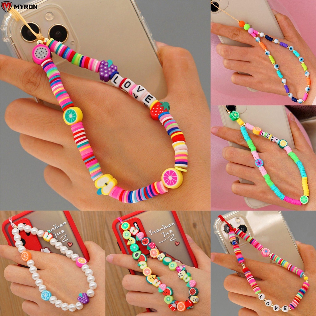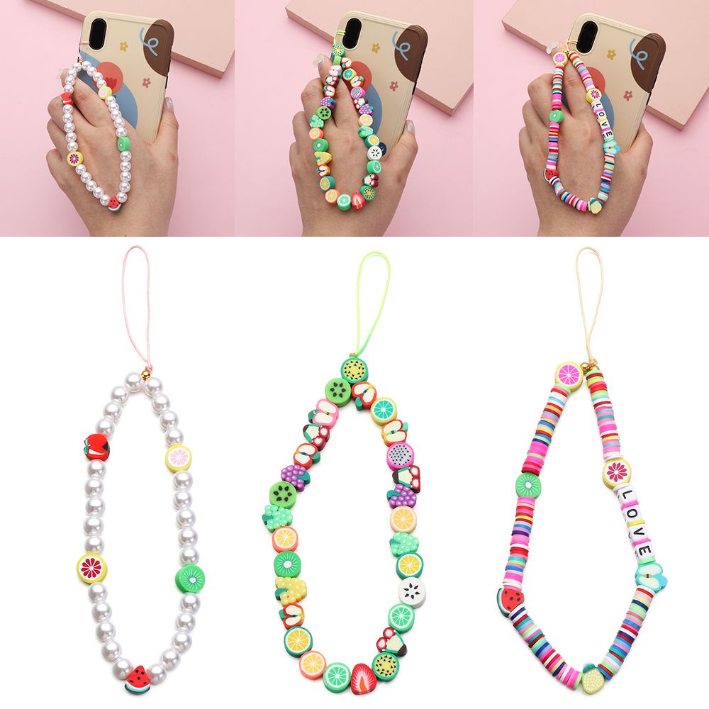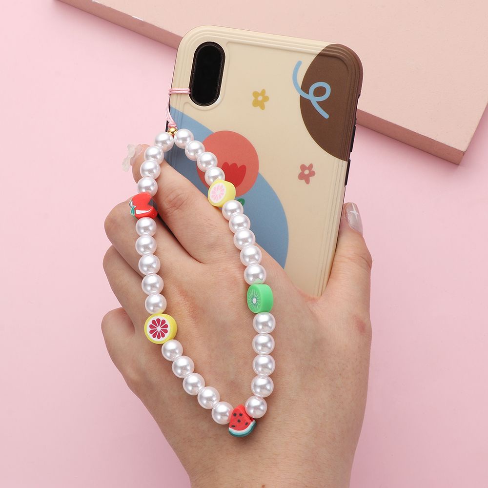 Giới thiệu [Mã LIFE0803ALL giảm 10% đơn 0K] Dây đeo cổ tay bằng acrylic đính hạt ngọc trai màu cầu vồng thời trang cho điện thoại