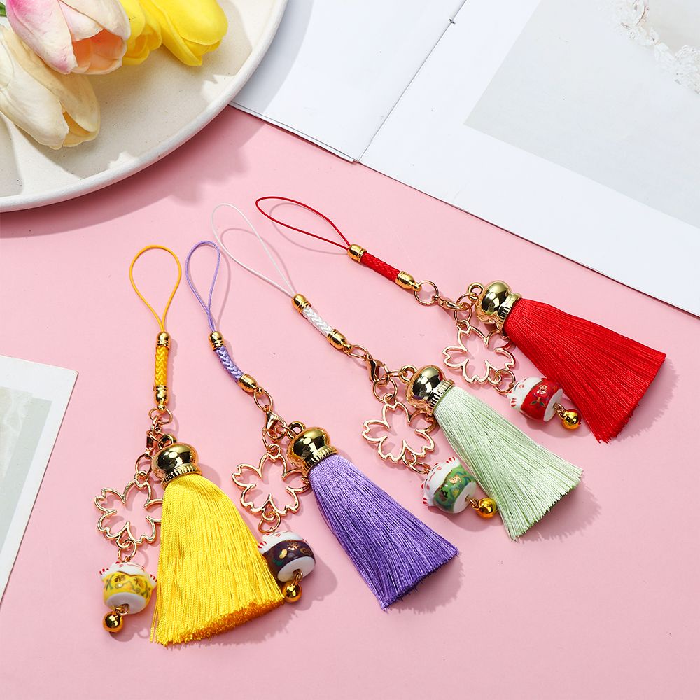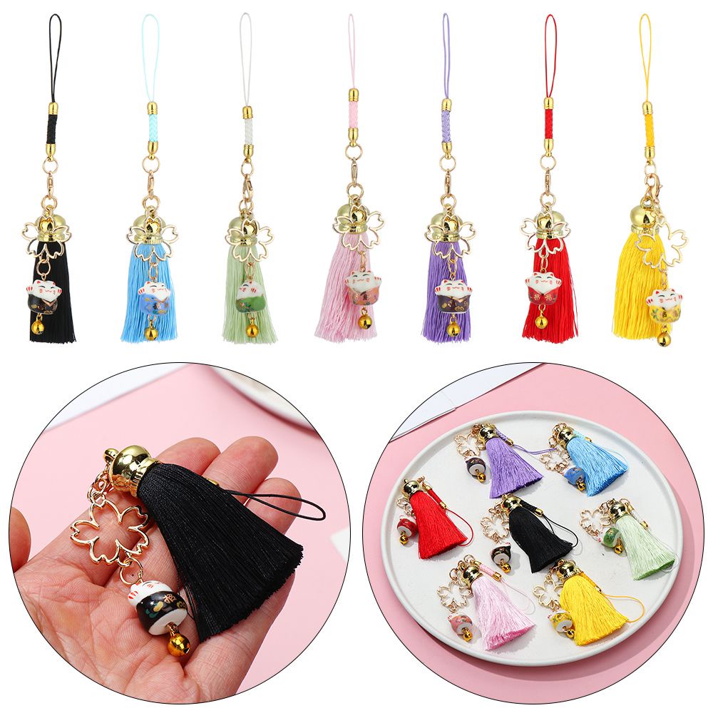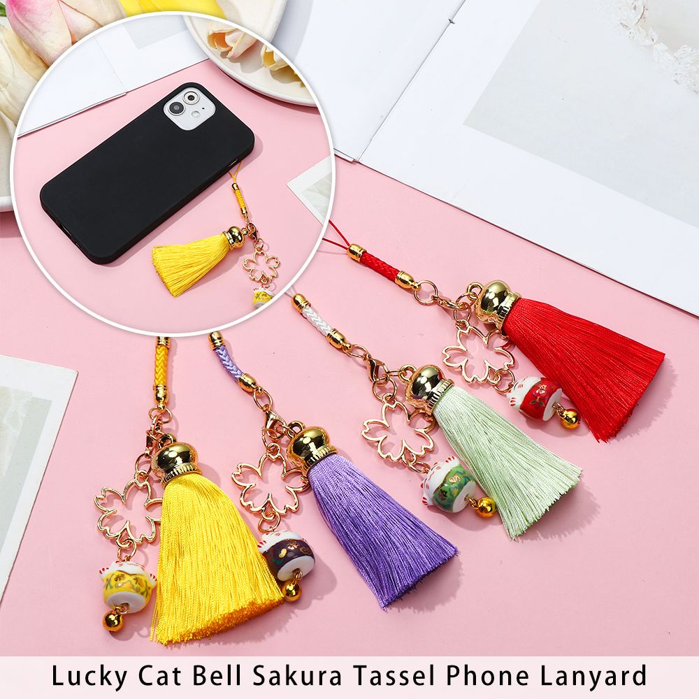 Name: Lucky Cat Bell Sakura Tassel Phone Lanyard