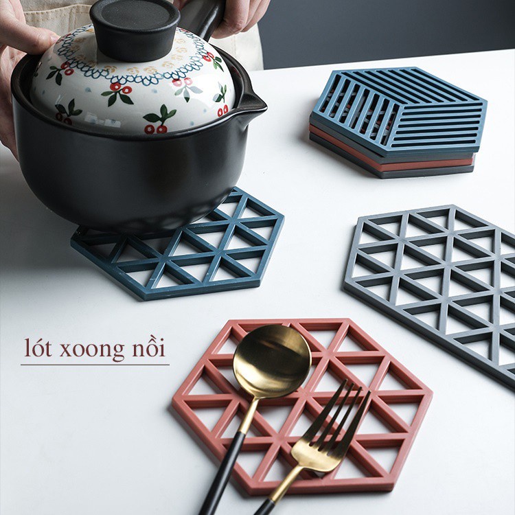 Đế Lót Ly Cốc - Miếng Lót Nồi Hình Lục Giác Bằng Nhựa Tpr Đàn Hồi Chịu NhiệtNgày nay góc bếp không chỉ để nấu ăn mà nó còn là nơi thể hiện sự chu đáo, ngăn nắp của gia chủ.