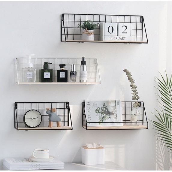 Nhà cửa & Đời sống > Nội thất > Kệ & Giá || [Mã LIFE1003ALL giảm 10% đơn 50K] Giỏ Cài Lưới Sắt,Giỏ Treo Khung Lưới_Kệ Sắt Đáy Gỗ Đa Năng - Kệ Treo Tường Có Rào ChắnCòn hàng