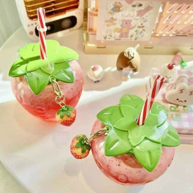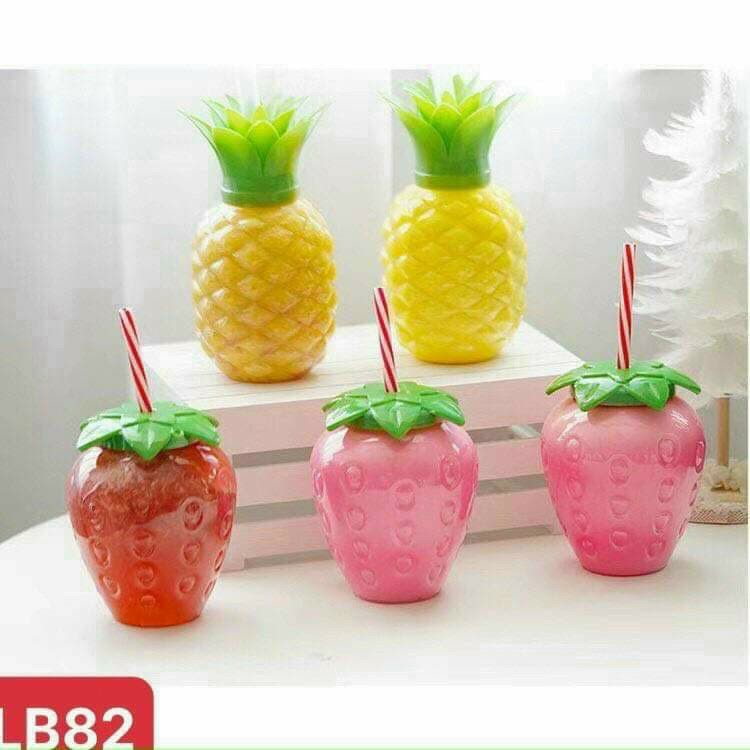 Bình nước nhựa hình quả dâu tây và trái dứa kèm ống hút\siêu xinh 500mlBÌNH CÓ ỐNG HÚT