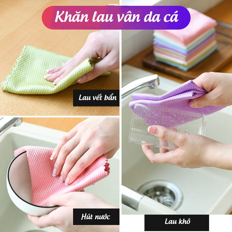 - Khăn lau bếp vảy cá đa năng làm từ chất liệu vải mềm mại không làm tổn hại da tay khi sử dụng, siêu thấm hút nước tốt cho bàn tay bạn khô ngay tức thì. Thân khăn là những sợi vải siêu mềm, sẵn sàng len lỏi vào những nơi mà bạn muốn lau sạch.
