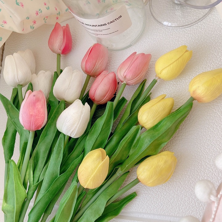 Hoa Tulip giả có thể làm phụ kiện trang trí cho các studio.