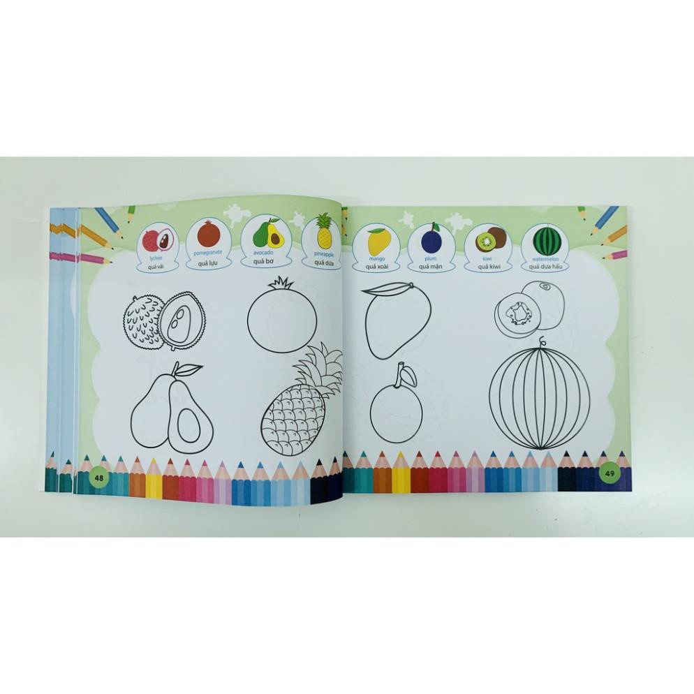 Tô Màu Sáng Tạo 2-6 Tuổi, Bé Tô Màu 9999 Song Ngữ BÉ TÔ MÀU 9999 SONG NGỮ ANH VIỆT là vở tập tô màu cho bé 2-6 tuổi bao gồm 9999 hình ảnh minh hoạ đầy đủ theo các chủ đề BÉ TÔ MÀU 9999 giúp bé thoả sức sáng tạo cùng màu vẽ với hàng nghìn bức tranh ngộ nghĩnh, đáng yêu theo các chủ đề. TÔ MÀU SÁNG TẠO 2-6 TUỔI giúp bé thông minh hơn, sáng tạo hơn. Đi kèm hình ảnh là tên con vật, hình ảnh được phiên âm song ngữ giúp bé học hỏi tốt hơn. Vở bé tô màu 9999 bao gồm: 168 trang. Khách sỉ liên hệ trực tiếp shop tư vấn #tô màu #tômàu #tomau #tapto #tomau9999 #tomausangtao #betaptomauGiá FEFE
