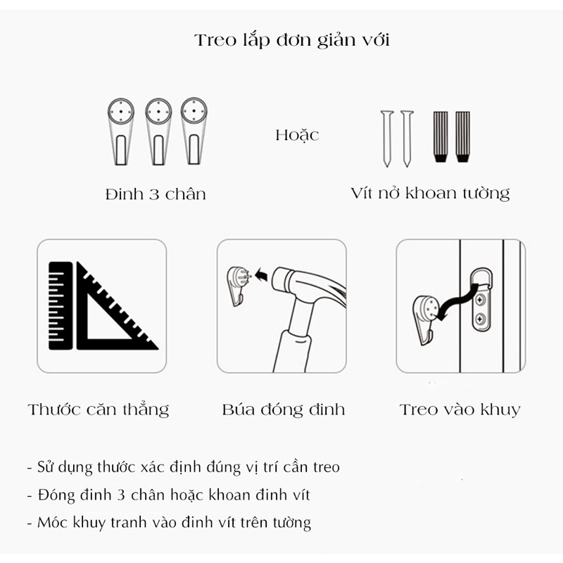 Hướng dẫn đóng đinh 3 chân treo khung ảnh