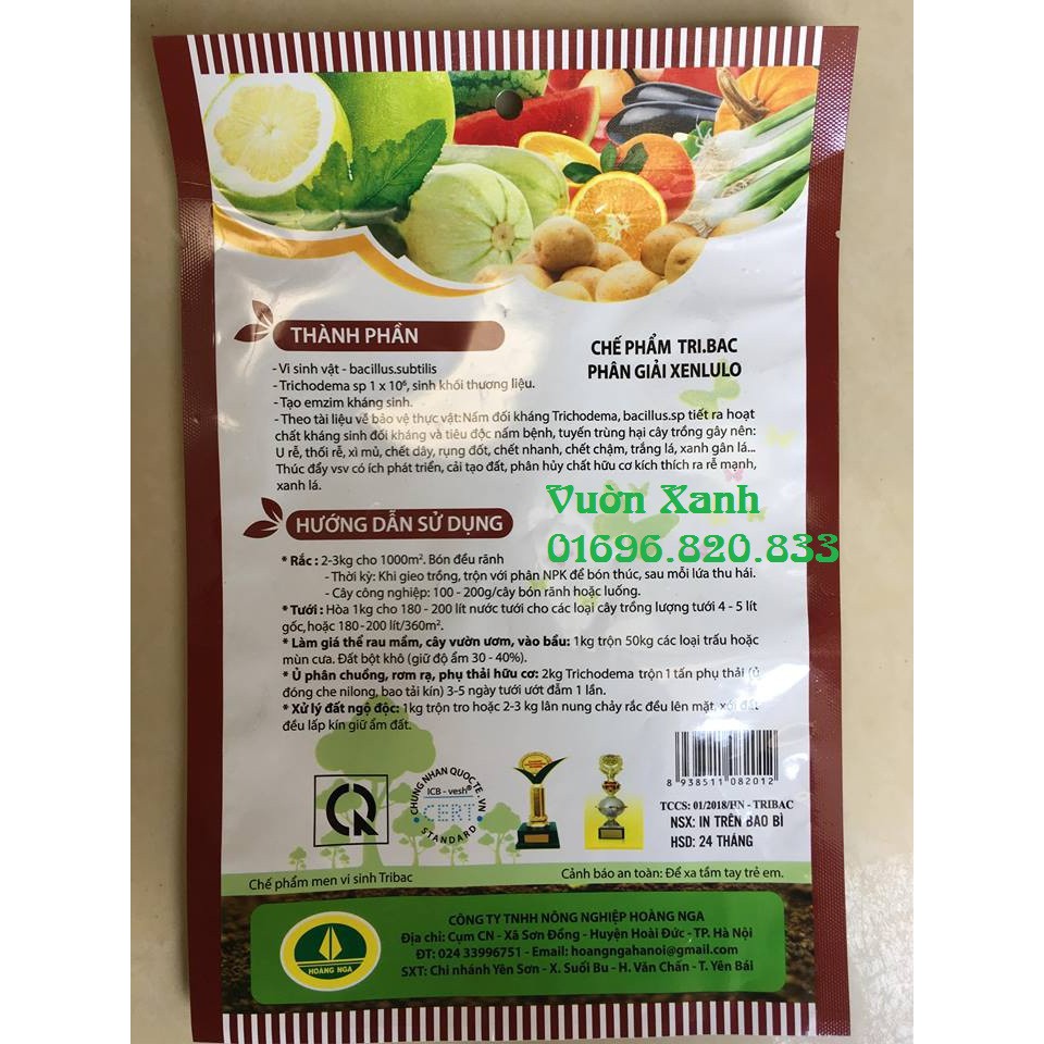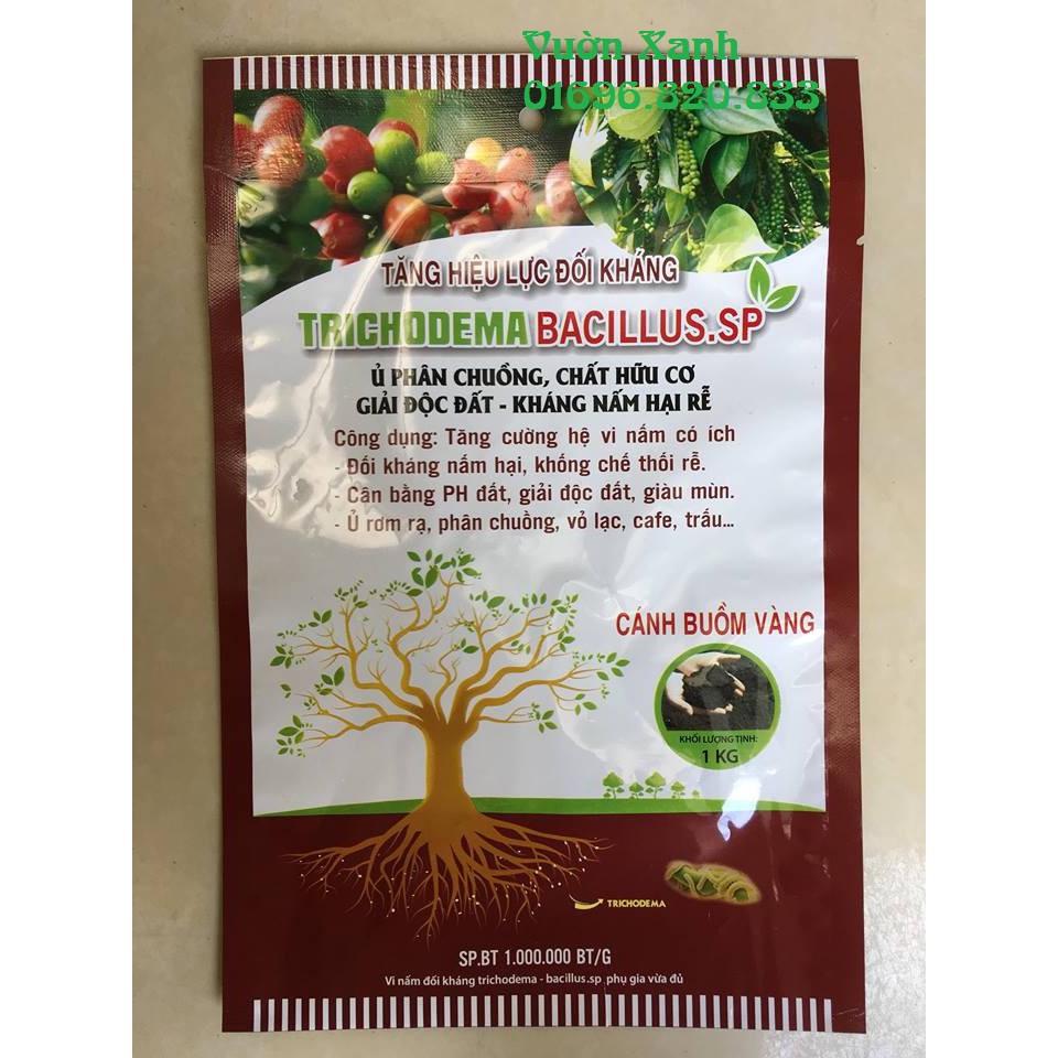 - Trichoderma là 1 loại nấm, vi sinh vật sống đối kháng các loại nấm hại trong đất, khống chế thối rễ. Nay mạnh mẽ hơn nhờ bổ sung vi sinh vật có ích Bacillus.subtilis- Giúp cân bằng PH đất, giải độc đất, giàu mùn.