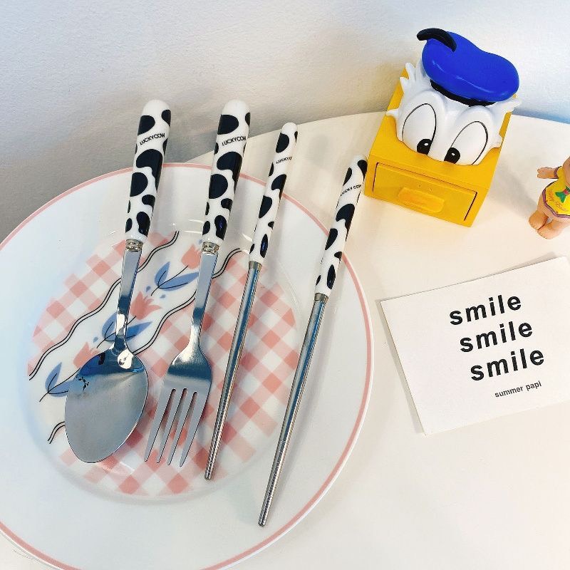 Nhà cửa & Đời sống > Bộ đồ bàn ăn > Bộ dao kéo || [Mã LIFE1003ALL giảm 10% đơn 50K] Bộ Đũa Thìa Dĩa Inox Cán Sứ Cách Nhiệt Họa Tiết Bò Sữa Có Hộp Đựng Siêu Đáng YêuCòn hàng