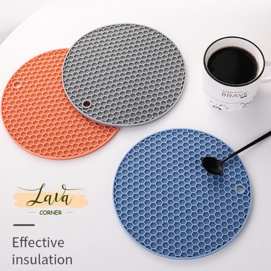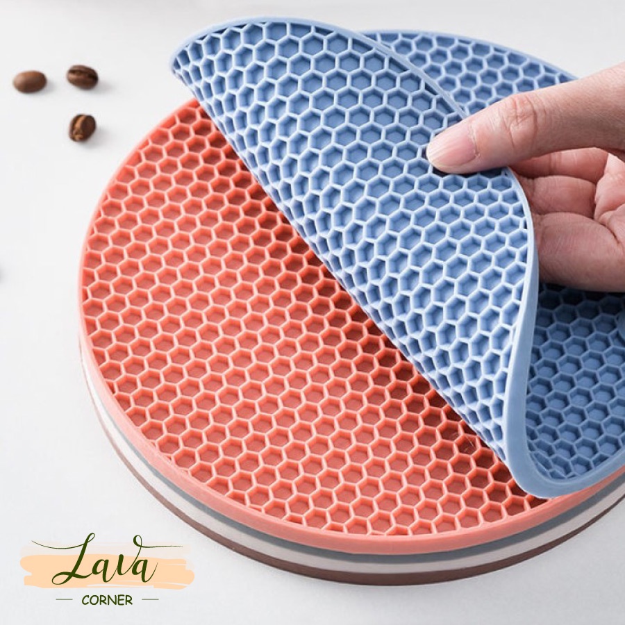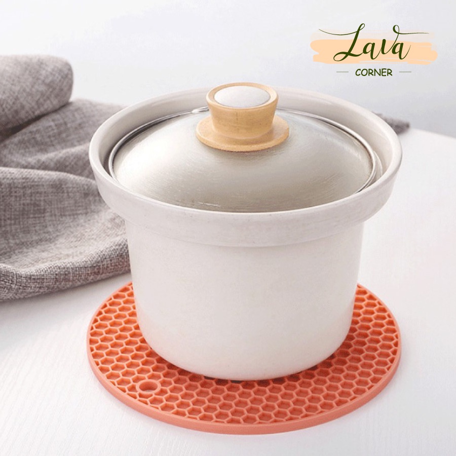 - Với thiết kế bề mặt tổ ong giúp miếng lót nồi có độ bám dính cực tốt với mặt bàn và mọi đồ vật được đặt lên.