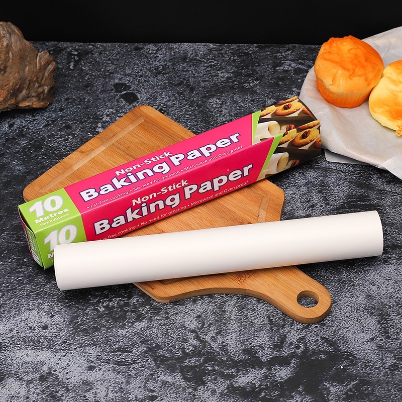 Giấy có tác dụng chống dính khi dùng trong lò nướng, lò vi sóng, lót đáy khuôn, thành khuôn, bảo quản đồ ăn. Mỗi cuộn giấy đi kèm với hộp bao ngoài và phần răng cưa giúp cắt giấy dễ dàng