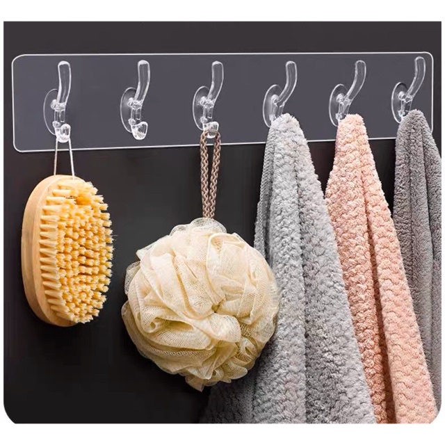 Móc dài 6 núm treo đồ đa năng, miếng dán có khả năng chống nước nựa ạ.