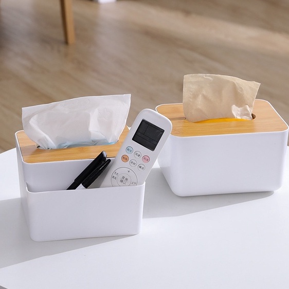 Nhà cửa & Đời sống > Sắp xếp nhà cửa > Hộp khăn giấy || [Mã LIFE1003ALL giảm 10% đơn 50K] Hộp đựng giấy ăn, khăn giấy 2 ngăn mặt gỗ tre có khe gài điện thoạiCòn hàng