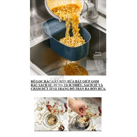 khay lọc rác, rổ lọc rác gắn bồn rửa bát :Thiết kế nhiều lỗ thoát nước giúp lọc và giữ toàn bộ rác thải, vụn thức ăn trong quá trình loại bỏ, làm sạch không rơi vào bồn rửa, tránh gây tắc nghẽn ống thoát nước.