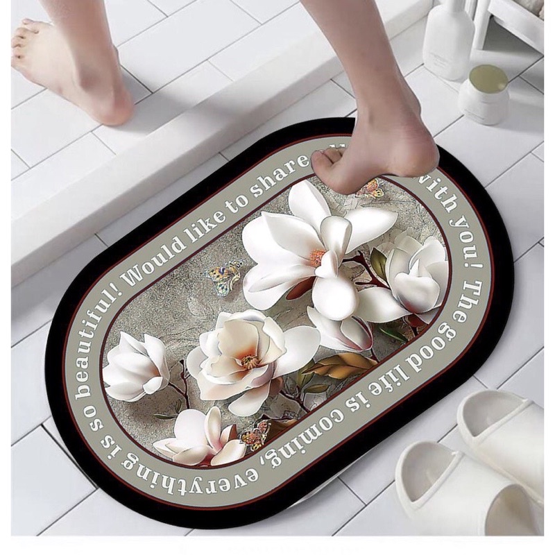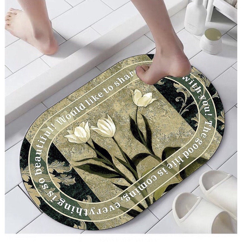 Thảm lau chân, thảm chùi chân hình ovan siêu thấm hút, chống trơn trượt mẫu mới