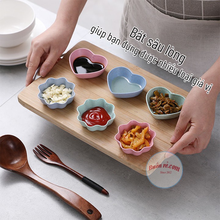 - Đĩa đựng gia vị, bát mini cho bé ăn dặm có nhiều hình dạng khác nhau như hình bông hoa, hình trái tim, chiếc lá vô cùng xinh xắn. Khi đặt đĩa đựng gia vị này lên bàn ăn hay bàn tiệc thì càng dễ thương, bắt mắt, tạo thêm chút thú vị khi thưởng thức các món ăn.