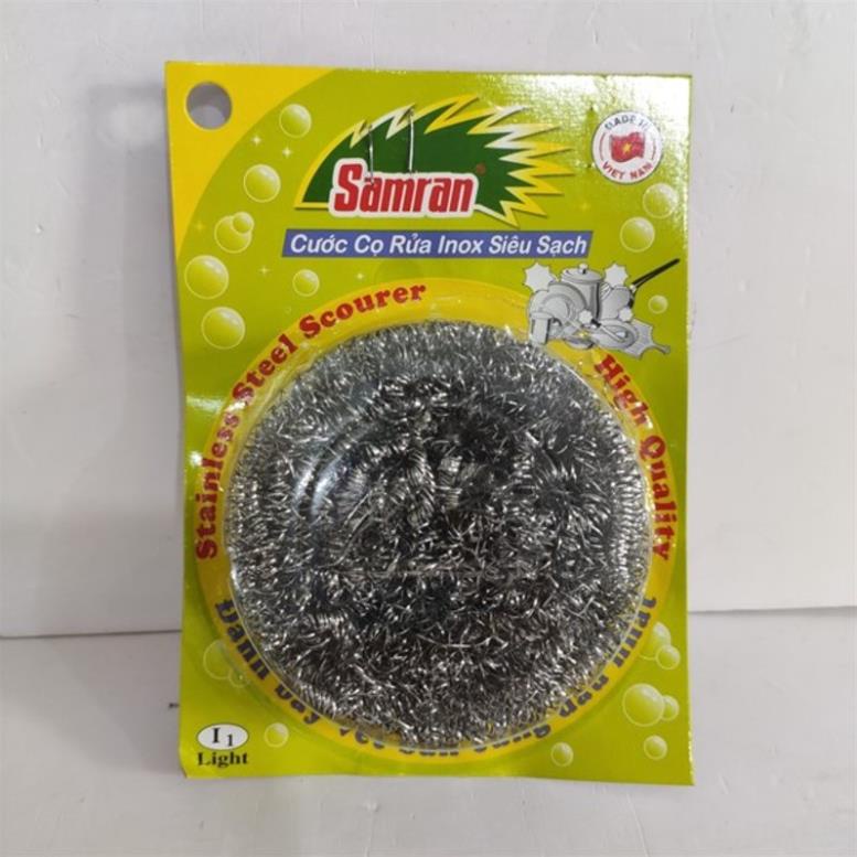 👉 Shop cam kết giao hàng đúng như mô tả,hoàn tiền 100% nếu sản phẩm lỗi,sản phẩm chất lượng kém.Được làm bằng thép không rỉ AISI 410 nên cước cọ nồi giúp lấy đi vết bẩn dễ dàng. Cọ nồi cước inox nén Samran 25g phù hợp cho việc rửa chén đĩa, vừa giúp bạn lấy sạch vết bẩn cứng đầu trên nồi chảo.