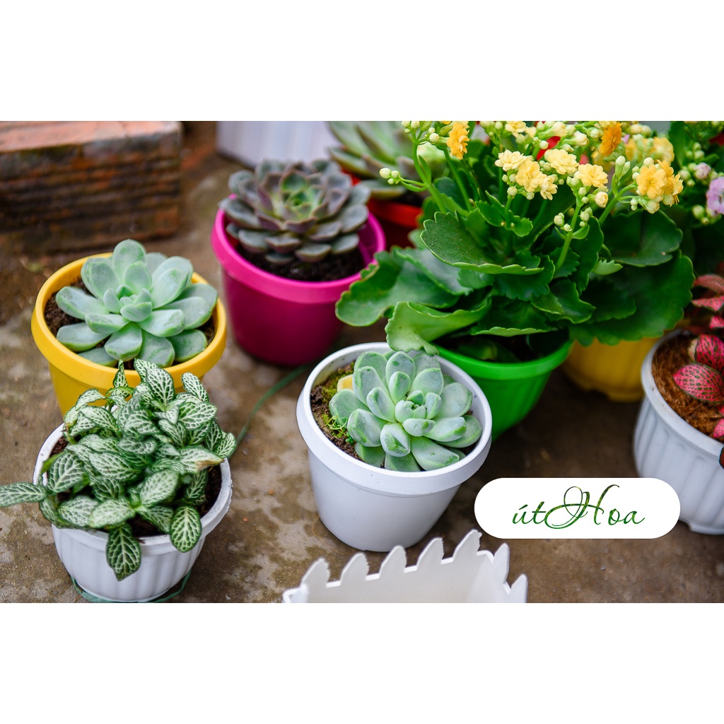 (Nhựa cứng) Chậu tròn có vành trồng sen đá, xương rồng dễ thương