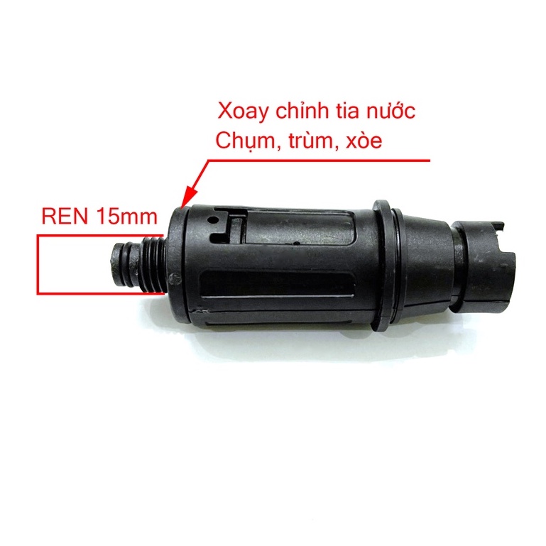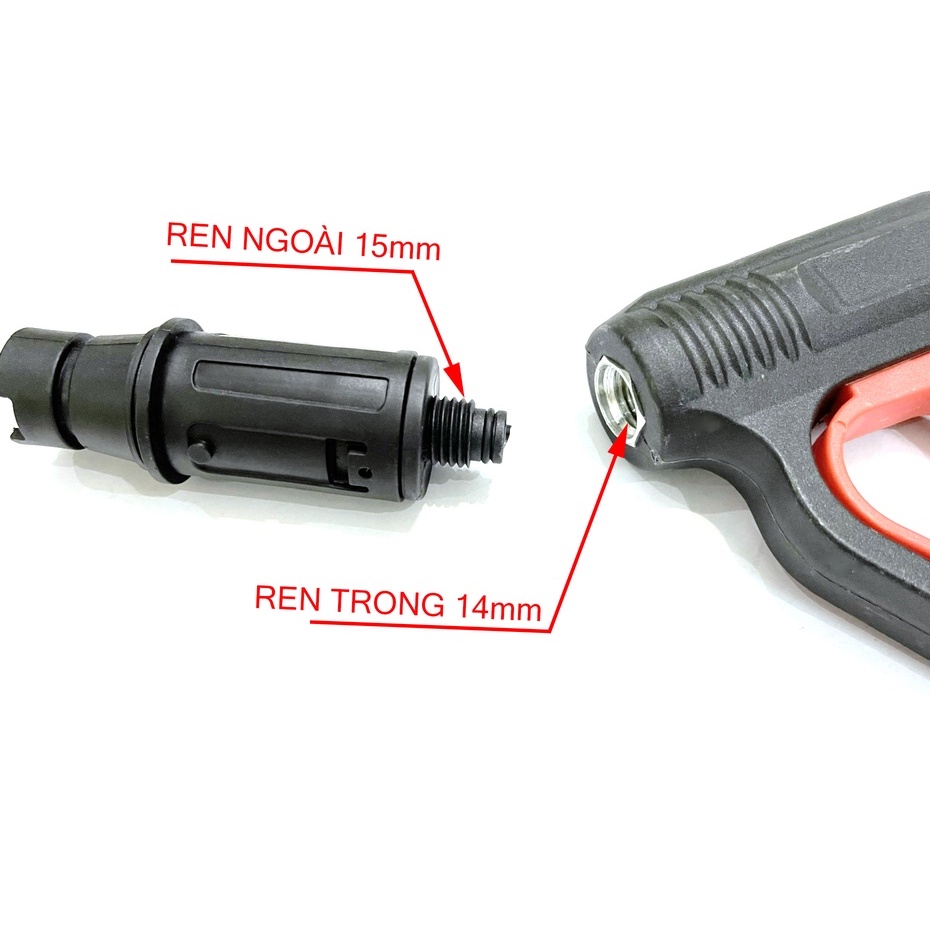 - Ren đầu béc : 15mm (ngoài) >> Nối thân súng ren 14mm (trong)