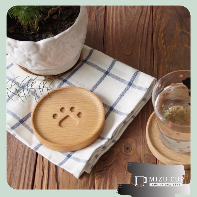 Nhà cửa & Đời sống > Bộ đồ bàn ăn > Khay, tấm lót bàn ăn || [Mã LIFE1003ALL giảm 10% đơn 50K] Lót cốc gỗ cao cấp hình bàn chân mèo siêu dễ thươngCòn hàng