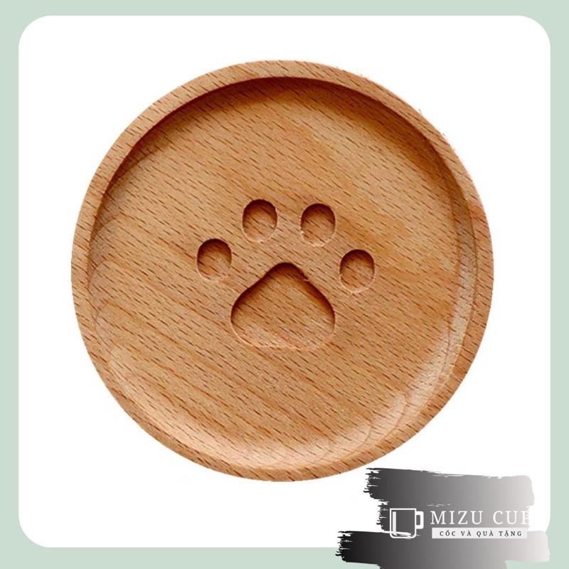 Lót cốc gỗ cao cấp hình bàn chân mèo siêu dễ thương