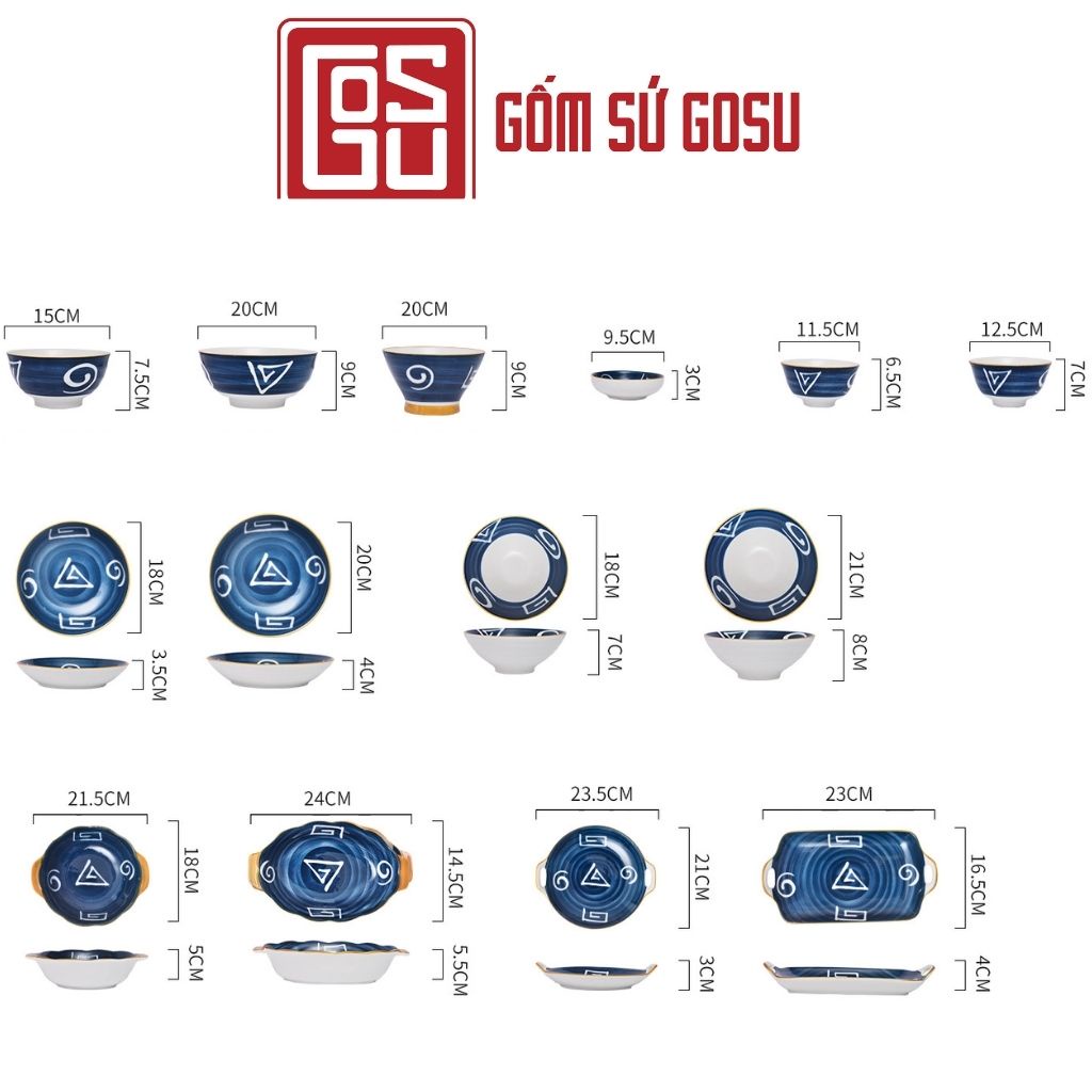 Giới thiệu Bộ bát đĩa sứ viền vàng họa tiết xoắn, bát đĩa decor phong cách Nhật Bản, bán lẻ