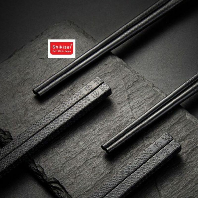Đũa kháng khuẩn Shikisai từ sợi thủy tinh tổng hợp . Chịu nhiệt đến 210oC .| Đũa hình tứ trụ , họa tiết hoa anh đào đặc trưng Nhật Bản , đầu đũa chống trơn trợt , (bìa vàng)