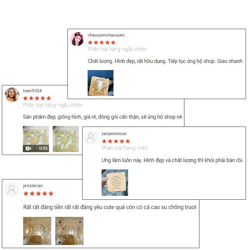 Đế lót nồi vốn là vật dụng không thể thiếu của các chị em trong gian bếp. Đế lót nồi bằng gỗ tiện dụng bền chắc cho Thời gian sử dụng lâu dài. Bạn có thể dùng rế lót nồi cơm, canh, kho… để không bị bỏng tay khi bưng nồi từ bếp đến bàn ăn.Với kích thước vuông, gọn, được khắc các họa tiết ngộ nghĩnh đẹp mắt, đế lót nồi bằng gỗ cũng là 1 vật dụng trang trí giúp cho bàn ăn của gia đình bạn thêm sinh động và lạ mắt.