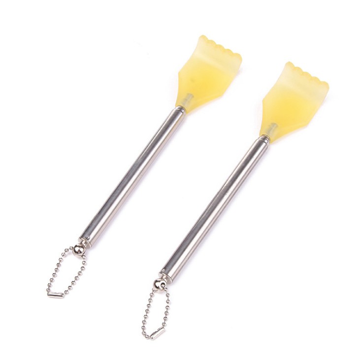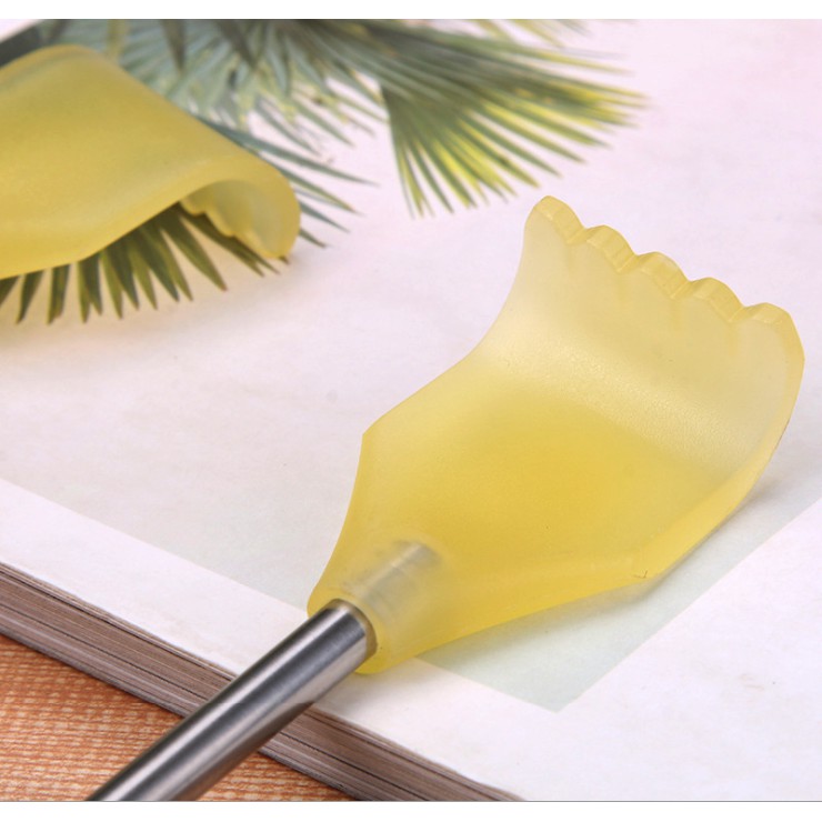 - Cây gãi lưng inox hình bàn tay nhựa có thể kéo ra và thu gọn, rất tiện ích.