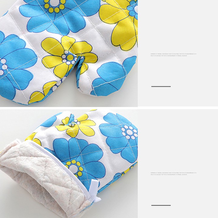 • Được làm bằng vải dày và lót 1 lớp nỉ bên trong đảm bảo an toàn cho tay bạn khi cầm nắm những vật dụng nóng khi đang vào bếp.