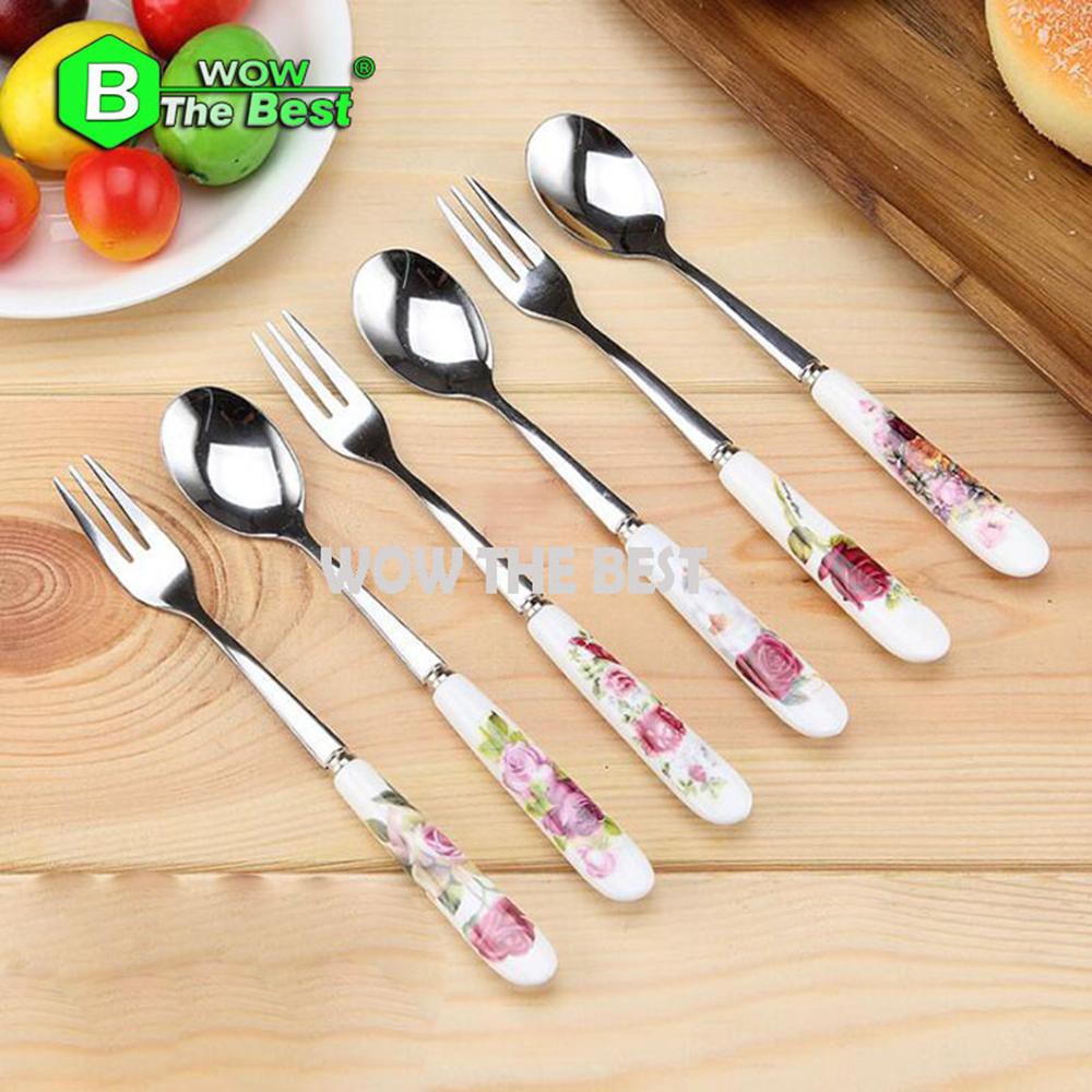 ☘ Dĩa/muỗng cao cấp sang trọng☘ Phần chuôi bằng sứ cao cấp có họa tiết.