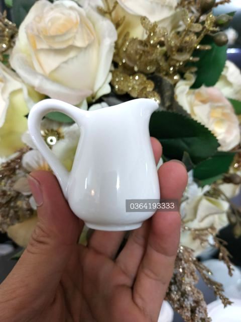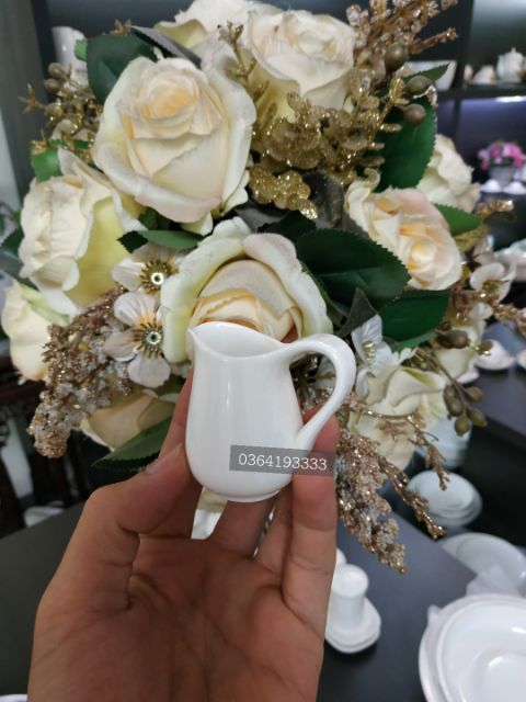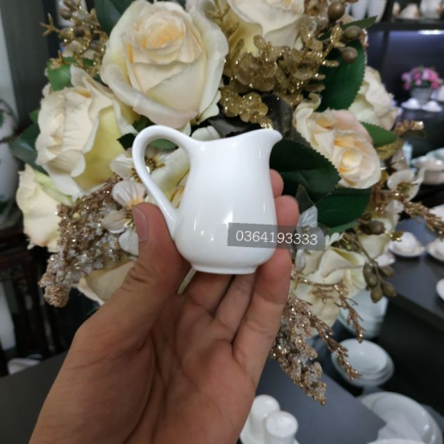 Bình rót sữa bằng sứ trắng trơnDung tích ước lượng khoảng 35ml ( size bé nhất )