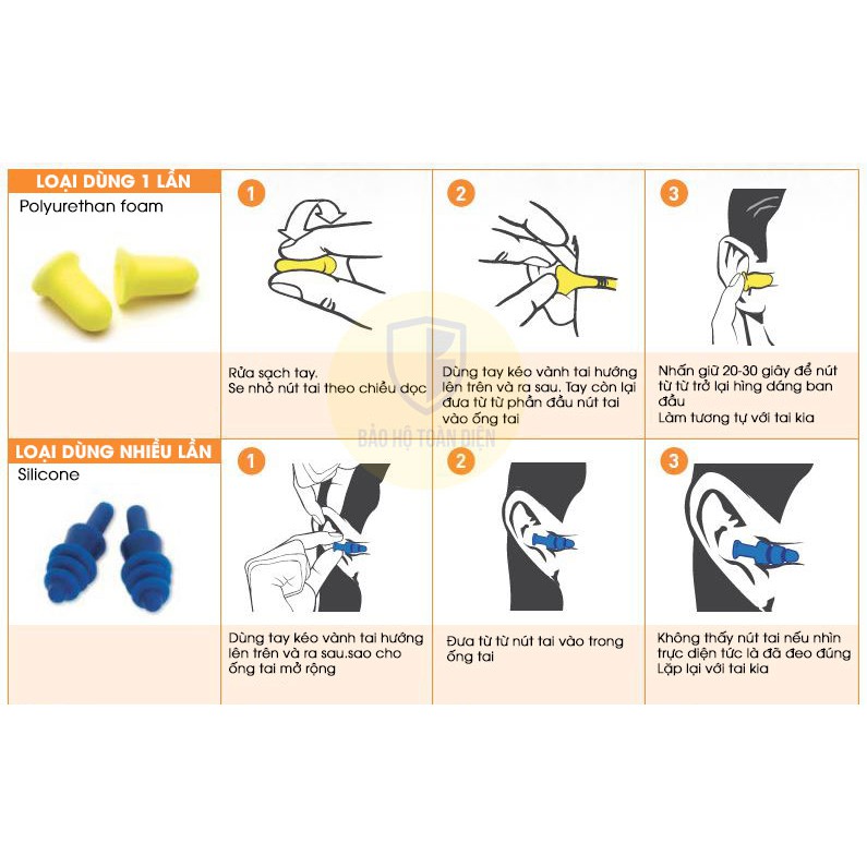 Độ chống ồn NRR: 25 dB (chống ồn tốt hơn chụp tai giảm ồn)