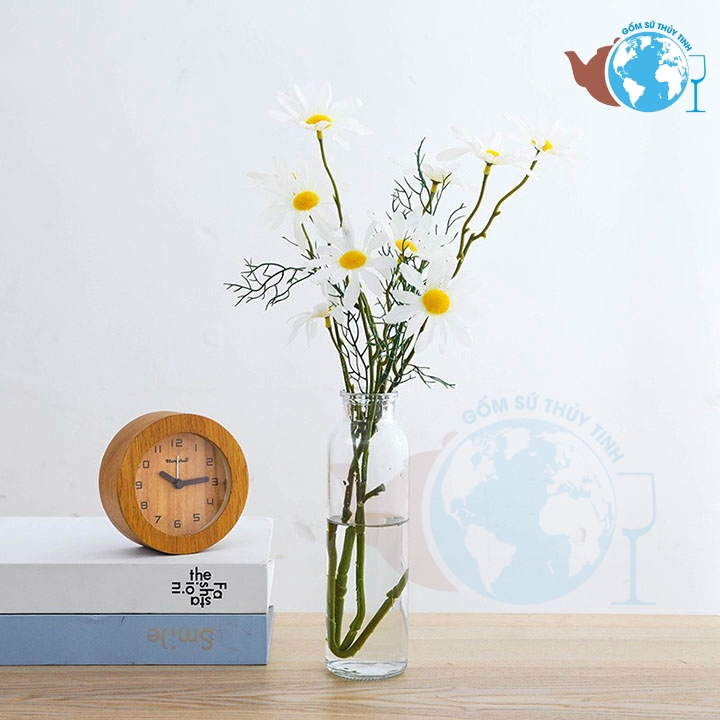 * Với bình bông lọ hoa thủy tinh trong suốt, bạn có thể thỏa sức sáng tạo với nhiều phong cách cắm hoa khác nhau, rất phù hợp khi trang trí bàn làm việc hoặc bàn ăn.