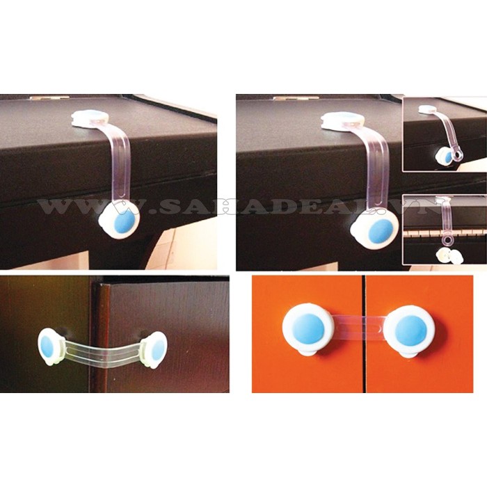 – Chất liệu nhựa trong suốt, có thể uốn cong. Sử dụng băng keo 2 mặt dính ở 2 đầu. Dùng để khóa tủ lạnh, ngăn kéo, hộc tủ tránh cho bé mở bị kẹt tay
