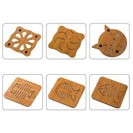 - Miếng lót xoong nồi,chén bát bằng gỗ sẽ giúp bạn gìn giữ tốt mặt bàn bằng kính hay bằng gỗ khi đem thức ăn mới vừa nấu xong trên nồi, trên chảo ra.