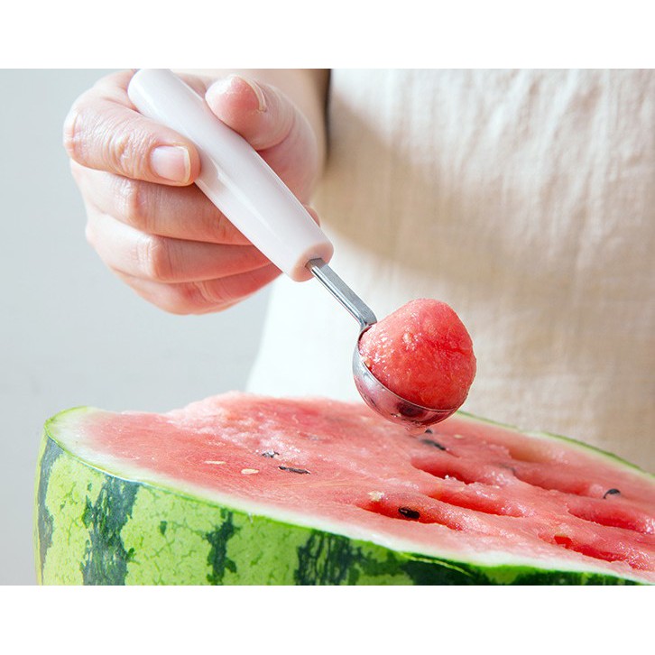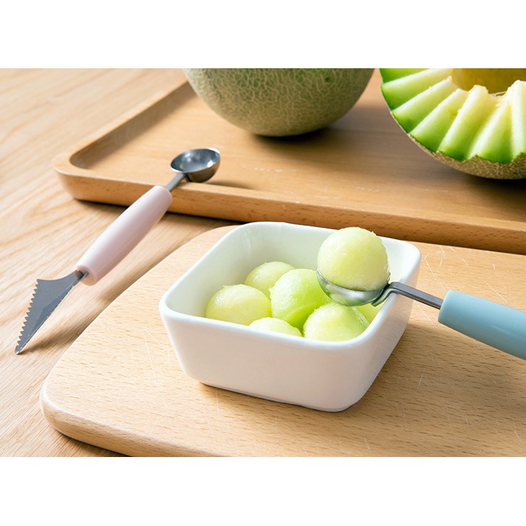 Muỗng hai đầu được thiết kế gồm 2 đầu, một đầu dùng để múc các loại quả mềm như dưa hấu, đu đủ, thanh long… một đầu để tỉa rau củ, hoa quả, cho bạn gái thể hiện sự khéo léo và cắt tỉa nhiều dĩa hoa quả bắt mắt cho cả gia đình.