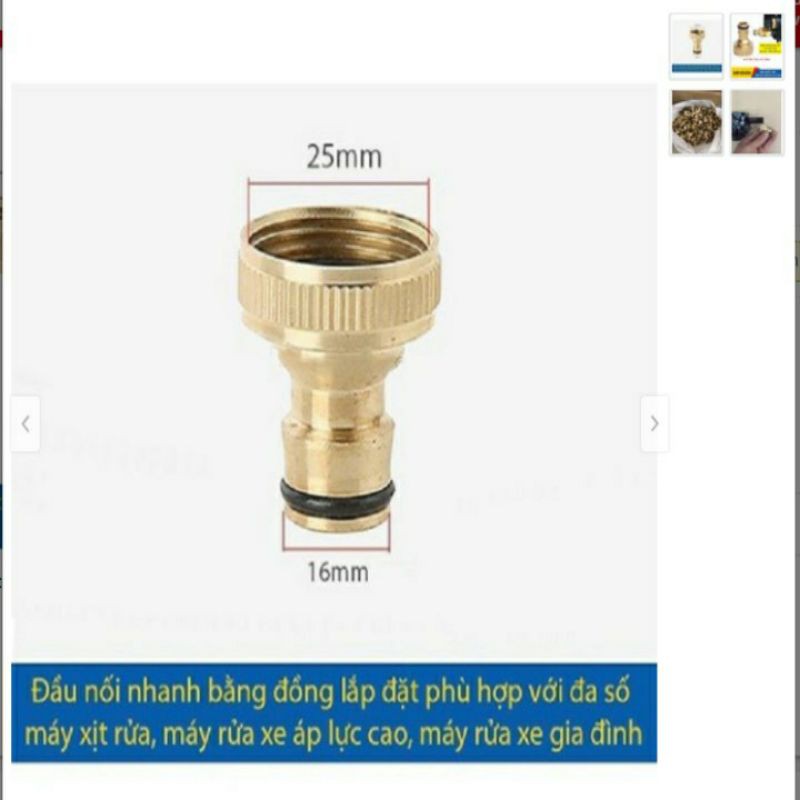 lưu ý mọi người kiểm tra hàng trước khi thanh toán nhé đầu nối ống hút máy rửa xe _ ĐỒNG THAU – BỀN BỈ máy rửa xe mini của bạn sử dụng 1 thời gian , thường bị bể hay nứt jack mủ nối vào máy nay đã có đã có jack thay thế vĩnh viễn , bền bỉ theo thời gian đầu nối ống hút máy rửa xe _ BỀN BỈ THEO THỜI GIAN Khớp nối đồng đầu nước vào máy xịt rửa, phụ kiện máy rửa xe áp lực cao, chất liệu đồng chắc chắn, thay thế khớp nối nhựa, đầu lọc nhựa truyền thống, phù hợp đa số máy rửa xe áp lực cao, máy phun xịt rửa áp cao áp, máy rửa xe gia đình Thông tin nổi bật: Kết hợp với đầu nối nhanh dễ dàng kết nối & sử dụng - Được làm từ đồng cao cấp, cực kỳ chắc chắn - Có khả năng chịu nhiệt, chịu áp lực tốt - Khớp nối chuẩn nhất, không có hiện tượng rò nước, bền bỉ với thời gian - Thích hợp với tất cả các loại máy xịt rửa, máy rửa xe áp lực cao, máy rửa xe gia đình - Kết hợp với đầu nối nhanh dễ dàng kết nối & sử dụng - Được làm từ đồng cao cấp, cực kỳ chắc chắn - Có khả năng chịu nhiệt, chịu áp lực tốt - Khớp nối chuẩn nhất, không có hiện tượng rò nước, bền bỉ với thời gian - Kích thước ren: Ren nối máy có ren trong 25mm Thích hợp với tất cả các loại máy xịt rửa, máy rửa xe áp lực cao, máy rửa xe gia đìnhGiá UXD