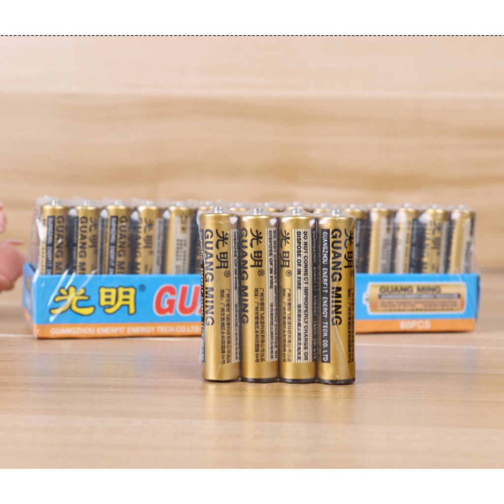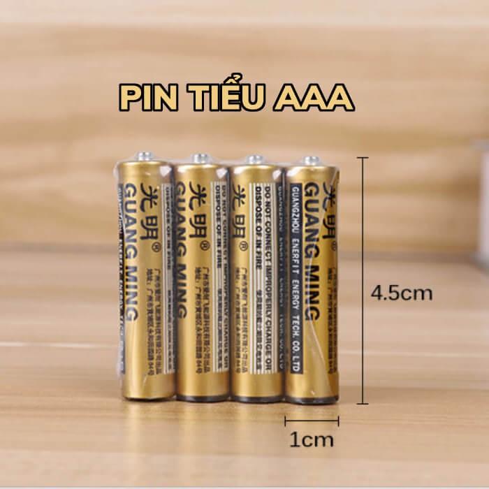 Vỉ 4 viên pin AAA, pin đũa, pin nhí GUANG MING ( 10 vỉ/ 40 viên / hộp )Dung lượng tốt, dùng lâu dài, không chảy nước