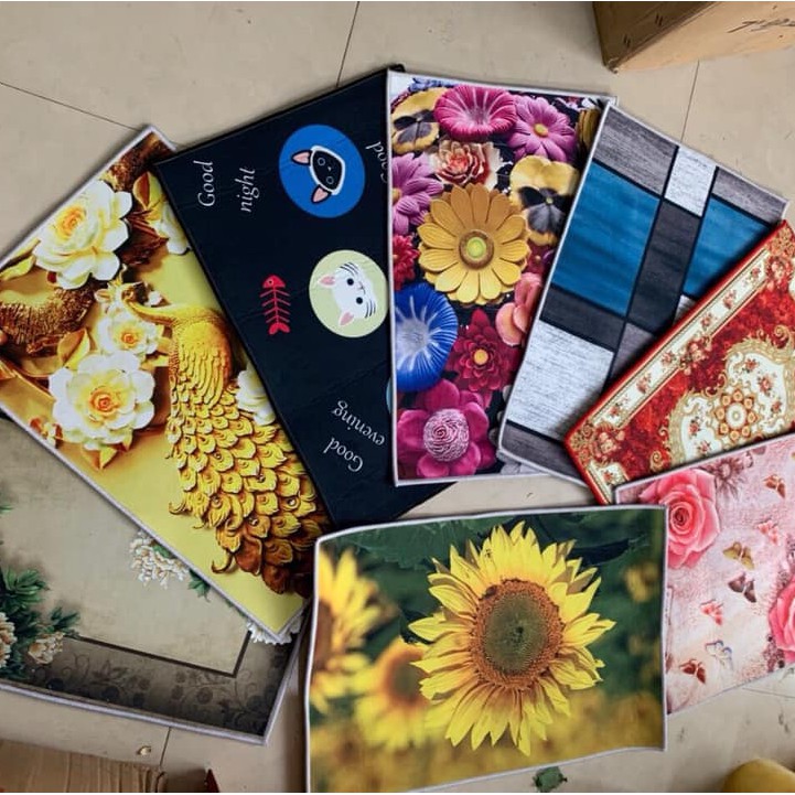 Thảm Nỉ Lau Chân 3D Dày Dặn, Siêu Thấm, Chống Trơn Trượt (Giao Màu Ngẫu Nhiên)🍀Thảm chùi chân họa tiết hoa 3D 2 lớp 1 mặt chống thấm được làm từ chất liệu vải sợi tổng hợp với đặc tính siêu thấm hút nước và bụi bẩn, giữ nhà cửa luôn khô ráo, sạch sẽ.