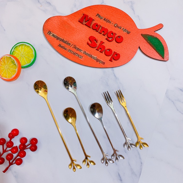 Giới thiệu Thìa nĩa décor cành lá sang trọng pha nước